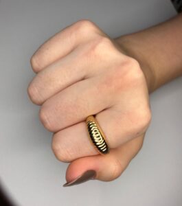 Este anel combina fios dourados que criam um efeito visual leve e contemporâneo, enquanto as pedras cravejadas garantem brilho e elegância na medida certa. Uma peça que une delicadeza e personalidade, perfeita para quem busca um acessório marcante sem abrir mão da sutileza. Ideal para compor looks do dia a dia com charme ou para dar um toque especial em produções noturnas.