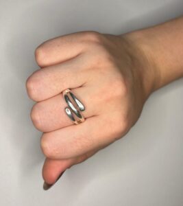 O anel torcido prata combina simplicidade e estilo em um design que remete a fios entrelaçados, criando um efeito visual elegante e atemporal. Seu acabamento prateado realça a leveza da peça, tornando-a ideal para composições delicadas ou para uso individual no dia a dia. Uma semijoia versátil, perfeita para quem valoriza detalhes únicos com discrição e sofisticação.